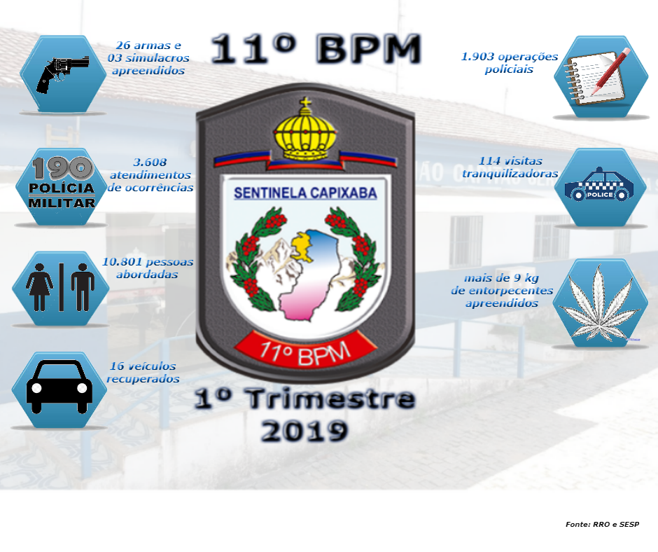 O 11º Batalhão da Polícia Militar divulgou nesta quarta-feira (10), os resultados da atuação da Unidade nos três primeiros meses do ano em curso. Com sede em Barra de São Francisco, a Unidade Operacional atende também os municípios de Água Doce do Norte, Águia Branca, Ecoporanga e Mantenópolis.