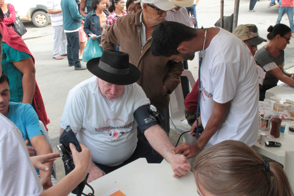 Durante a ação foi realizado aferição de pressão arterial, teste de glicose, avaliação do Índice de Massa Corporal (IMC) e orientações sobre nutrição, atividades físicas e hábitos saudáveis de vida por uma equipe multidisciplinar como nutricionista, enfermeiro, educador físico, farmacêuticos, dentistas e acadêmicos de enfermagem.