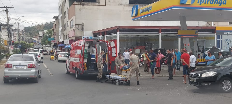 O veículo ficou com um lado amassado, já a moto e o motoqueiro caíram ao solo e foram socorridos até o hospital Alceu Melgaço Filho.