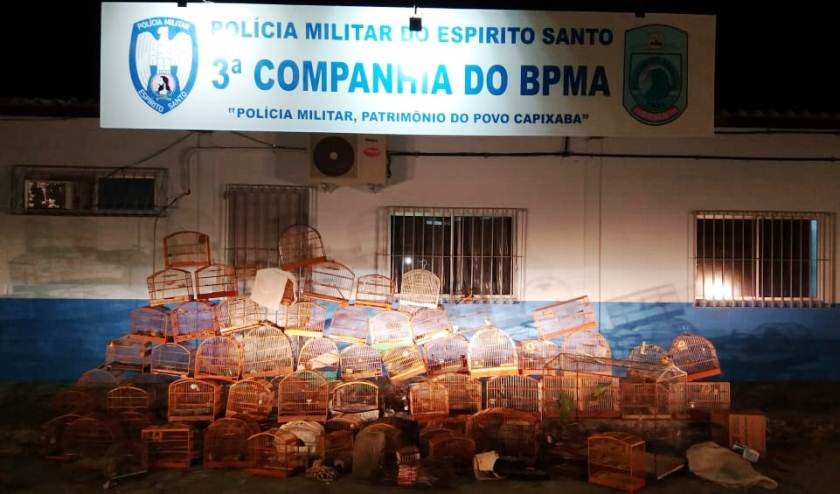 No total foram apreendidas duas espingardas, quatro armadilhas tipo ratoeira, 54 coleiros, cinco canários da terra, um catatau, um bigodinho, um sofreu, uma sabiá laranjeira, uma sabiá parda, três trinca-ferros, um azulão, um papagaio chauá, uma maritaca, totalizando 70 pássaros da fauna silvestre brasileira, 76 gaiolas de madeira, um viveiro de ferro, três gaiolas de transporte e quatro alçapões.