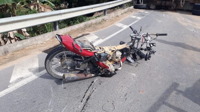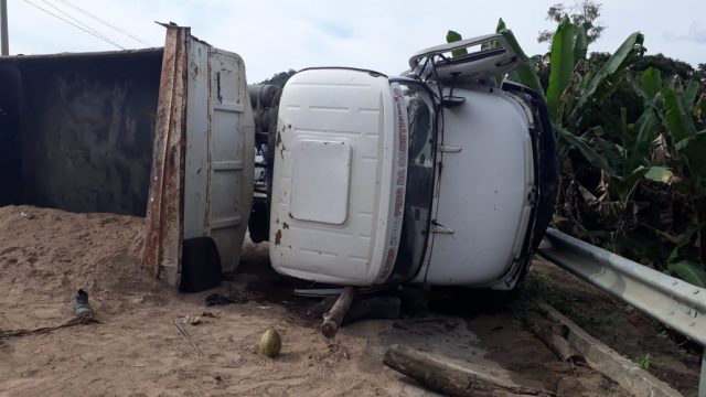 De acordo com informações, um caminhão caçamba, da empresa Alves Material de Construção, tombou em uma curva, próximo à empresa Gramarcal e próximo ao pesque e pague Fazenda Paraíso, em Barra de São Francisco. Uma motocicleta também se envolveu no acidente e ficou destruída.