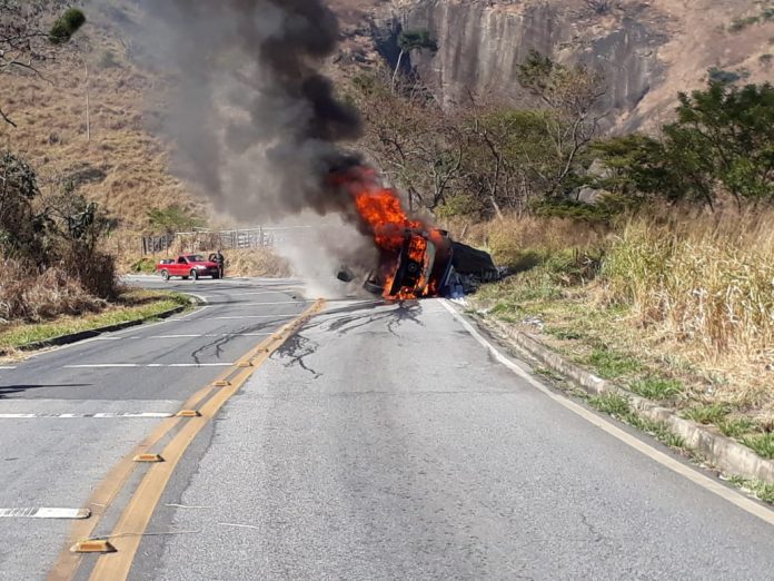Segundo informações o condutor do veículo não conseguiu fazer uma das curvas sinuosas da serra devido a uma falha mecânica, tombando o veículo. Com o impacto o veículo acabou pegando fogo, no entanto, o motorista foi retirado do veículo sem ferimentos graves.