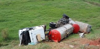 Carreta de transporte de leite tomba em rodovia de São Gabriel...