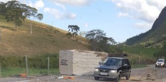 Bloco de granito cai de carreta em rodovia entre Barra de...