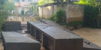 Enchente derruba ponte entre os bairros Campo Novo e Carabina e...