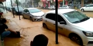 Forte chuva alaga ruas do Centro de São Gabriel da Palha