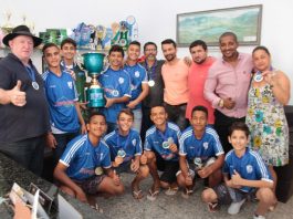 Prefeito Elias Dal’Col recebe a equipe de Ecoporanga, campeões do torneio de início da 44ª Copa a Gazetinha