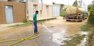 A pedido dos moradores, prefeitura realiza lavagem de ruas do loteamento...