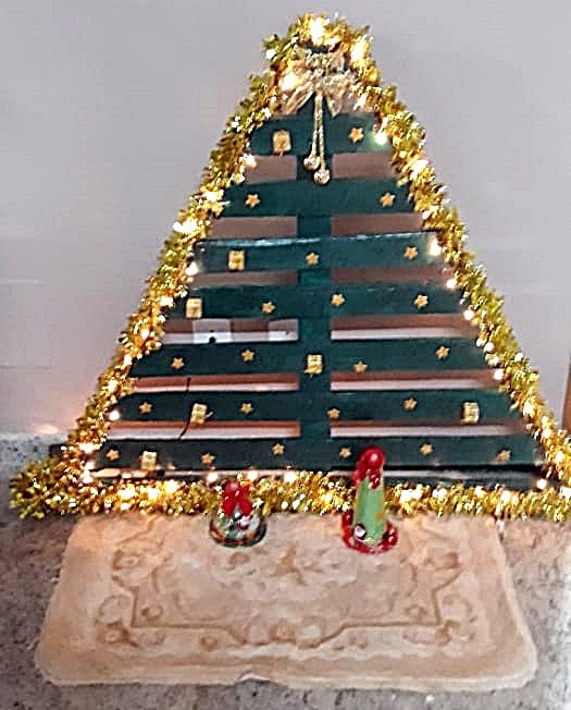 A árvore foi confeccionada com materiais doados pela comunidade, em madeira, adereços e pisca-pisca. O objeto decorativo foi feito por alguns dos 230 alunos (AEE) assistidos pela entidade local, orientados pelas professoras Sônia Cândido e Eni Ferreira.