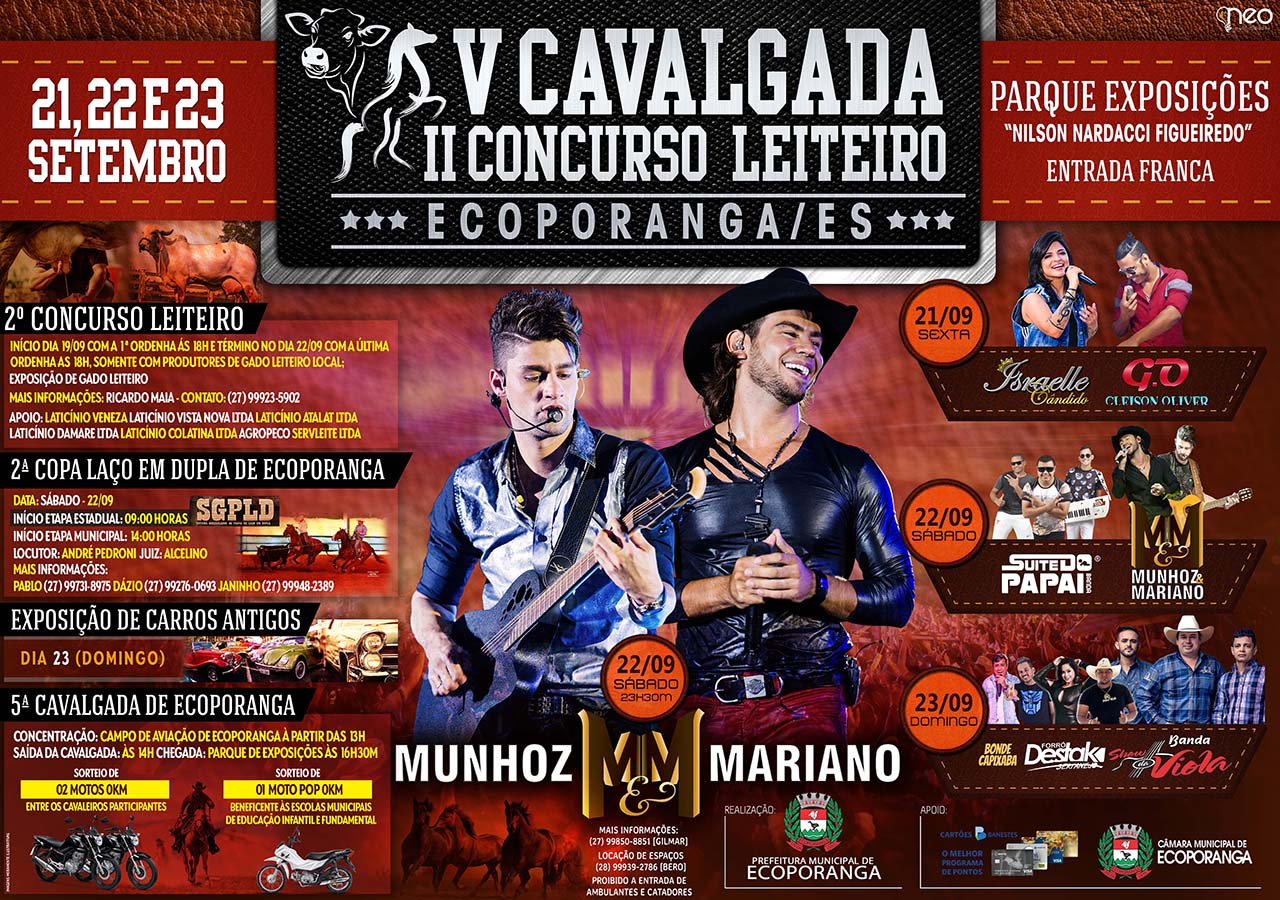 Confira a programação completa da V Cavalgada & II Concurso Leiteiro de Ecoporanga/ES set 11, 2018 Compartilhar no Facebook Tweet