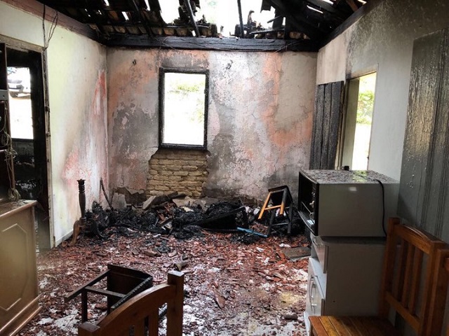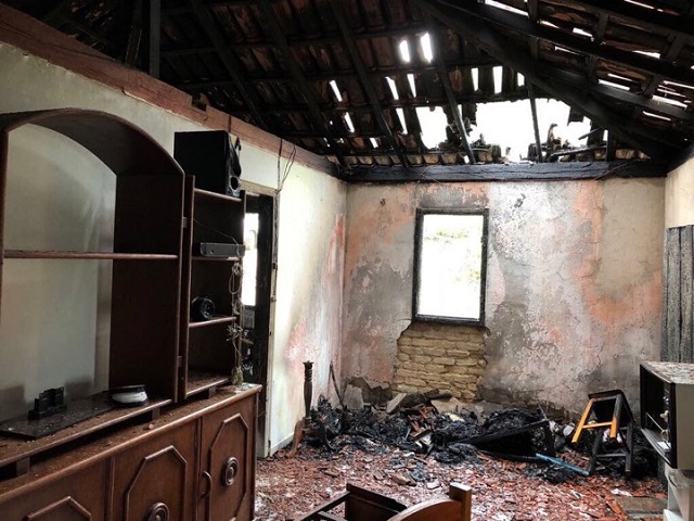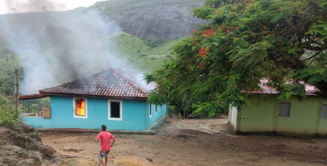 Rapidamente as chamas se alastraram em toda a residência, e foram consumindo tudo que se encontra dentro da casa.