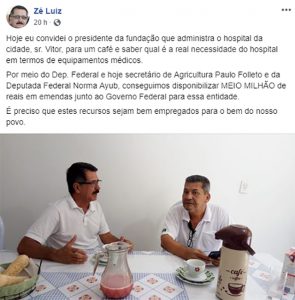 Na última terça feira (28), utilizando-se de seu perfil no Facebook, Zé Luiz afirma que conseguiu disponibilizar o valor de R$ 500.000,00 (quinhentos mil reais) para a Fumatre por meio de emendas parlamentares federais.