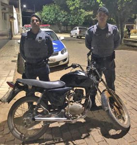 A Polícia Militar recuperou uma motocicleta CG Titan 150, de cor preta, na noite da última segunda-feira (01), enquanto patrulhavam pelo centro de Mantenópolis.