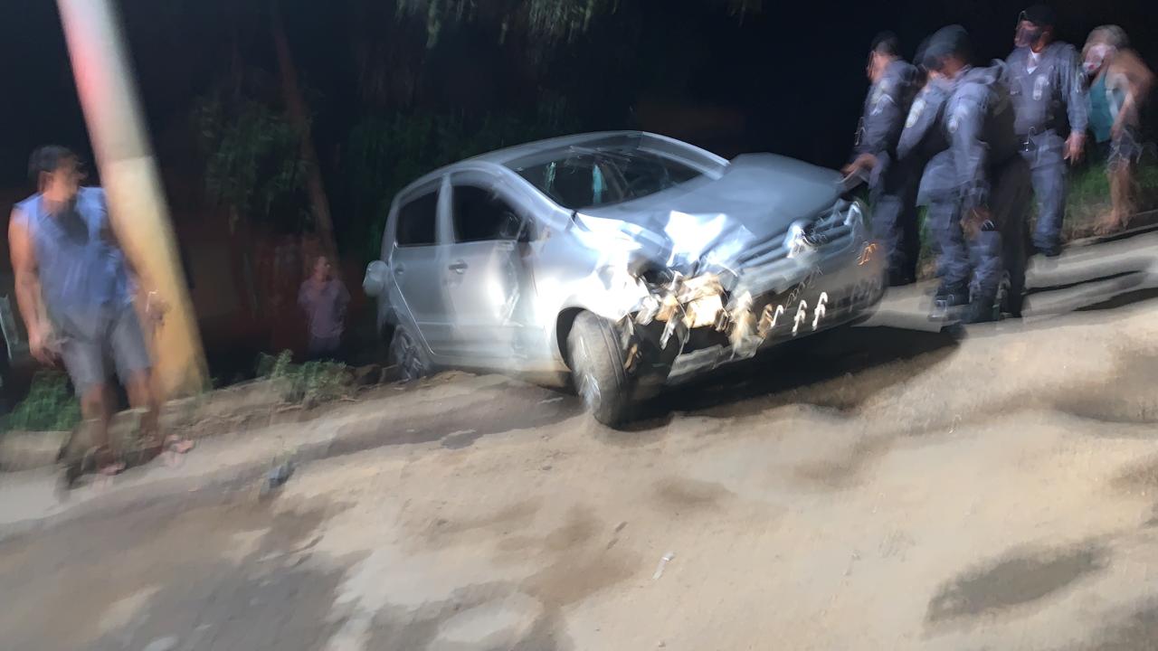 Um homem de 32 anos foi arremessado para fora da via pública, após colidir com sua motocicleta Honda CG contra um automóvel VW Fox.