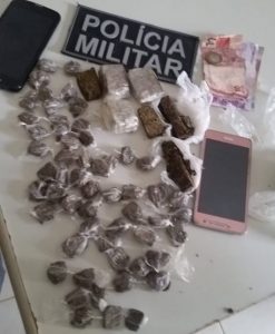 A equipe de Motopatrulha da PM apreenderam na última segunda-feira (01), 56 buchas de maconha, 03 pedaços de maconha pesando 25 gramas cada um e 04 pedaços médios pesando 12,5 gramas da mesma substância.