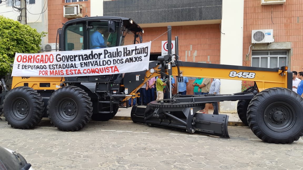 A motoniveladora, tipo patrol 0Km, foi conseguida pelo deputado estadual Enivaldo dos Anjos junto ao governador Paulo Hartung, atendendo também solicitação do prefeito Alencar Marim.