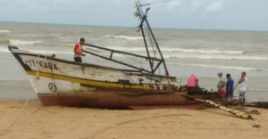 Uma embarcação com três pescadores de Vitória passou por um sufoco na noite do último sábado (24), na Praia de Gururi, em São Mateus, região Norte do Estado. O barco onde eles pescavam em alto-mar foi arrastado para a praia pela forte ventania, encalhou e ficou destruído. Ninguém se feriu, mas os prejuízos foram grandes.