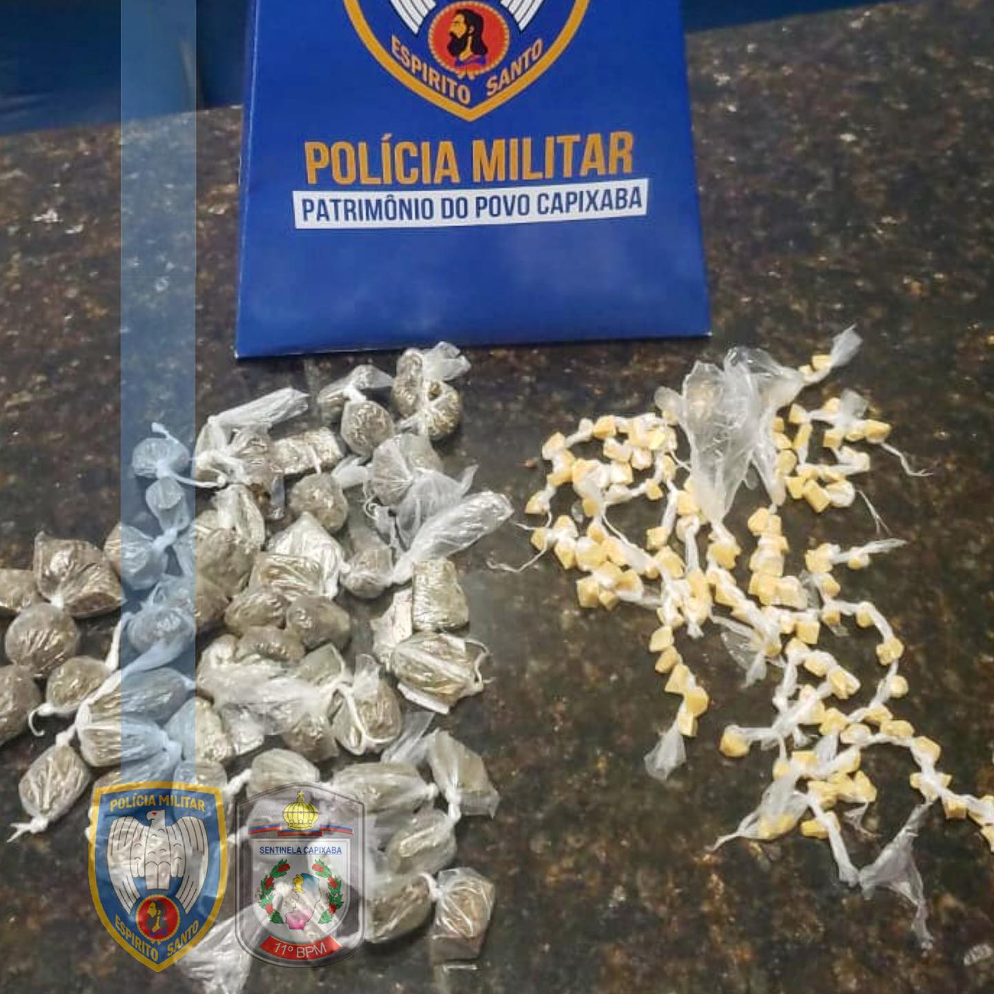 Policiais do 11° BPM apreenderam traficante é uma grande quantidade de drogas. O fato ocorreu na noite desta terça-feira (03), no município de Mantenópolis.