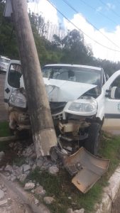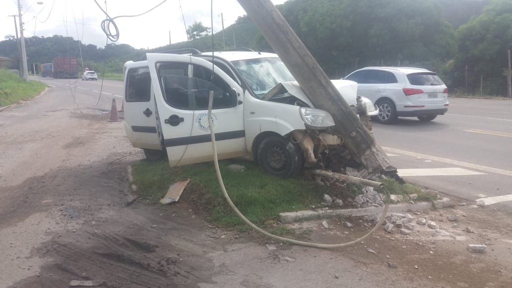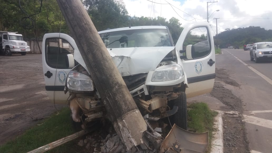 Um veículo Fiat Doblô, placa MQX – 9674, pertencente à Prefeitura Municipal de Água Doce do Norte, bateu em um poste próximo a João Neiva, nesta quinta-feira, (07), quando seguia para Vitória.